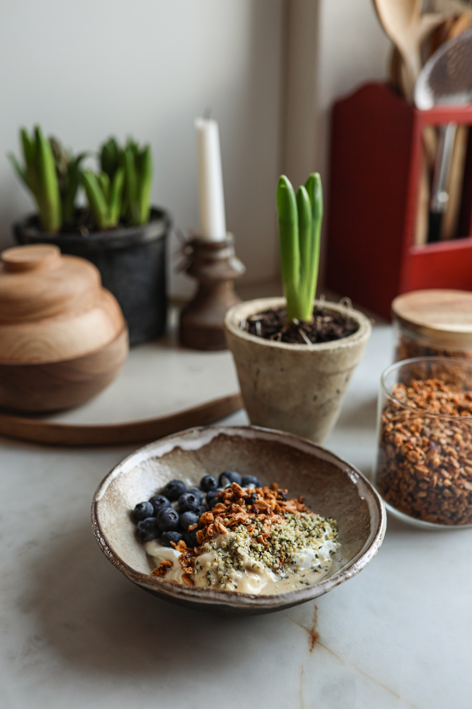 Es gibt viele Möglichkeit mit einem gesunden Frühstück in den Tag zu starten. Die Kids und ich essen gerne auch Joghurt oder Skyr zum Frühstück, dazu frisches Obst, Samen, Nussmus und selbstgemachtes Granola.