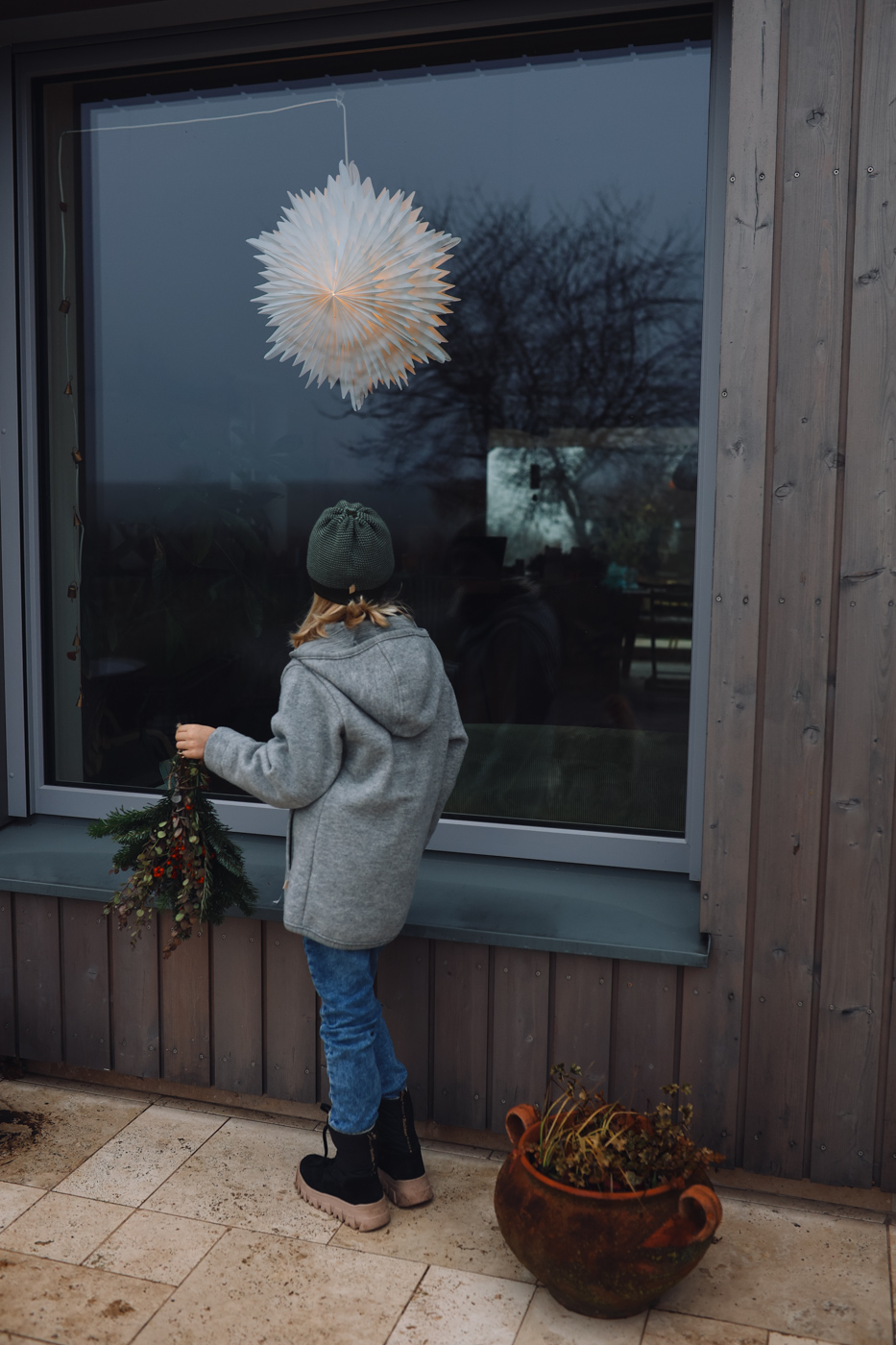 Bei uns zu Hause ist es schon seit einiger Zeit richtig weihnachtlich. Vermutlich hat es damit zu tun dass wir mehr zuhause sind als die letzten Jahre, da wir ja im September wieder Familienzuwachs bekommen haben und die Zeit mit unserem Jano sehr genießen. Schon vor Wochen haben wir das Haus außen weihnachtlich geschmückt – neben dem Adventkranz sind dabei viele kleine Bündel, Türkränze, Tischkränze und ein großer Stern aus Holunderholz entstanden. Ich mag diese natürlich Art der Dekoration, für mich gehört sie zur Weihnachtszeit einfach dazu.