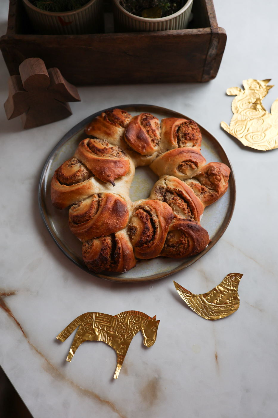 Aus diesem Rezept kann man neben dem nordischen Kranz auch einen klassischen Butterzopf machen, sowie Zimtschnecken oder kleine Striezel.